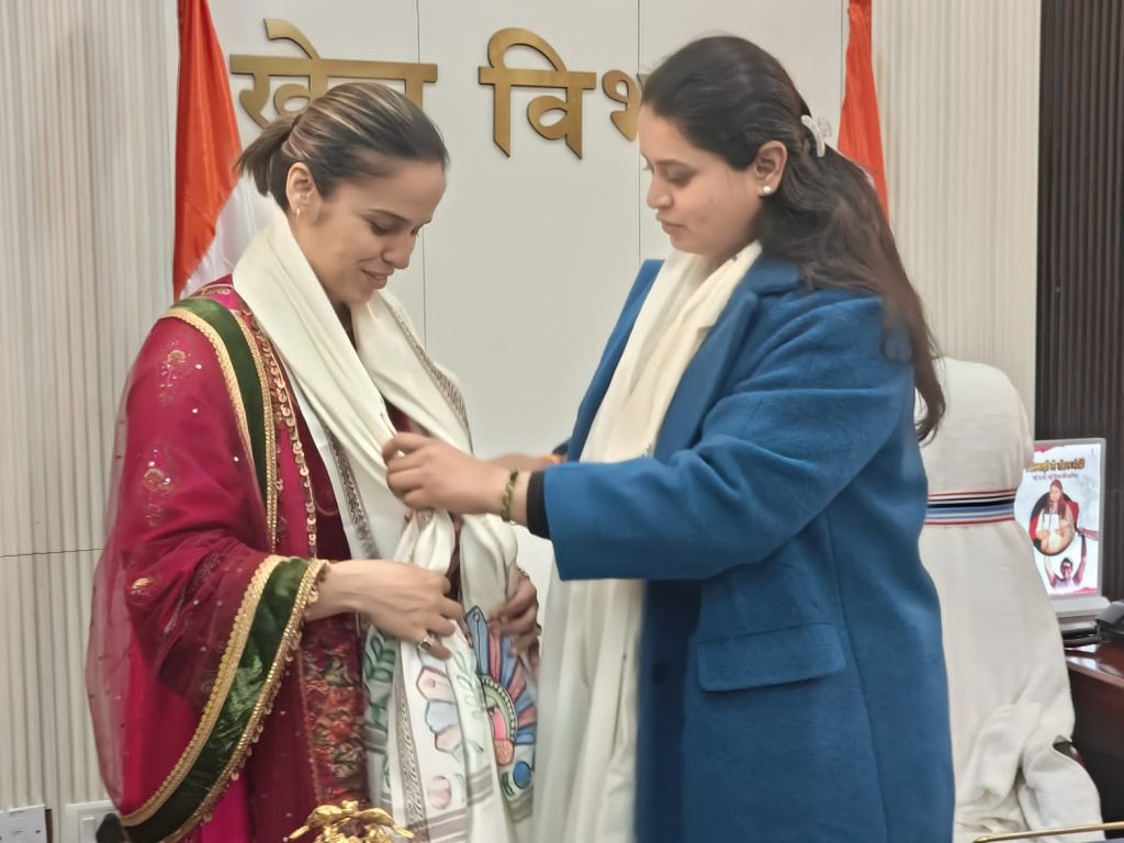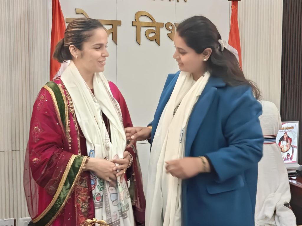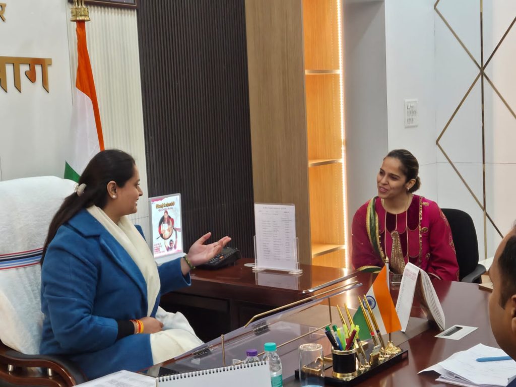 अंतर्राष्ट्रीय बैडमिंटन खिलाड़ी साइना नेहवाल ने आज खेल मंत्री सुश्री श्रेयसी सिंह से की मुलाकात