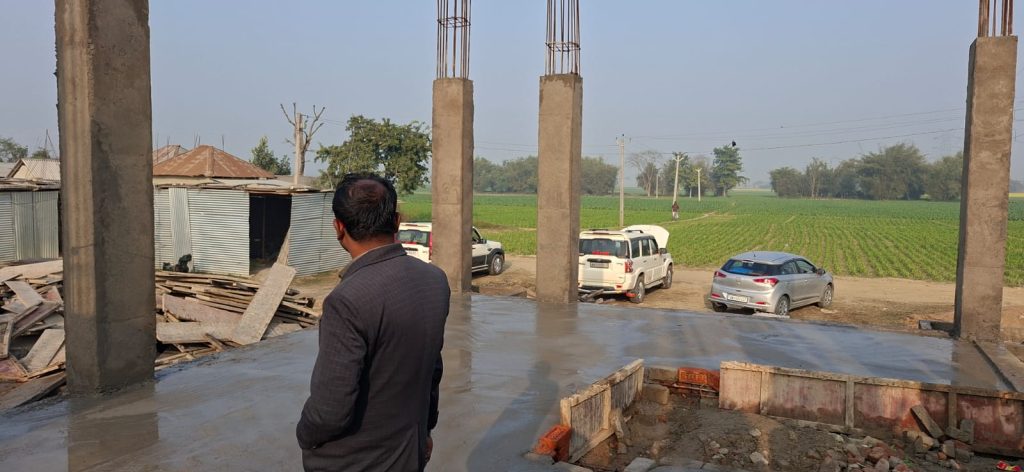 कार्य रुकने का कारण यह है कि भवन तक निर्माण सामग्री ले जाने में पानी लगा रहने के कारण समस्या हो रही है जिसके कारण कार्य अभी रूका हुआ है।