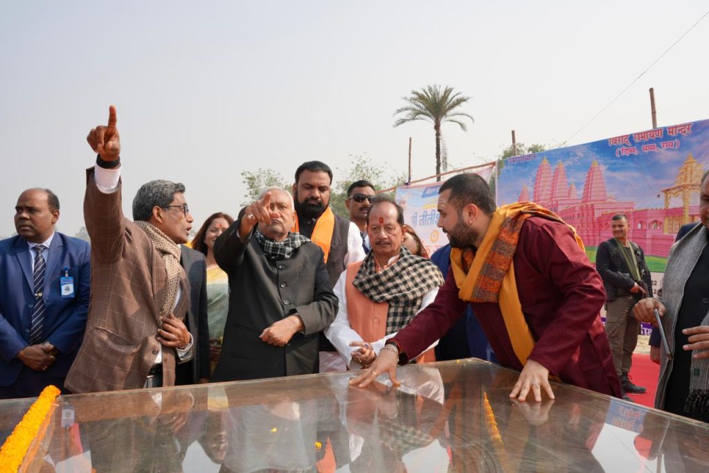 कार्यक्रम से पहले मुख्यमंत्री ने पूर्वी चम्पारण जिले के कल्याणपुर प्रखंड स्थित निर्माणाधीन विराट रामायण मंदिर के प्रगति कार्य का जायजा लिया तथा सहस्रलिंगम पूजन