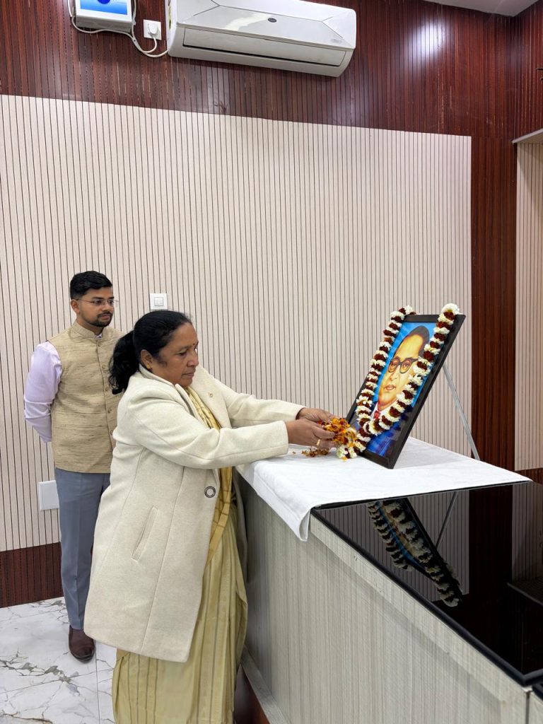 इसके पूर्व माननीय सदस्य महोदया एवं जिलाधिकारी महोदय तथा पुलिस अधीक्षक महोदया द्वारा संविधान निर्माता डॉक्टर भीमराव अंबेडकर जी के चित्र पर सर्दा सुमन पुष्प अर्पित किया गया।
