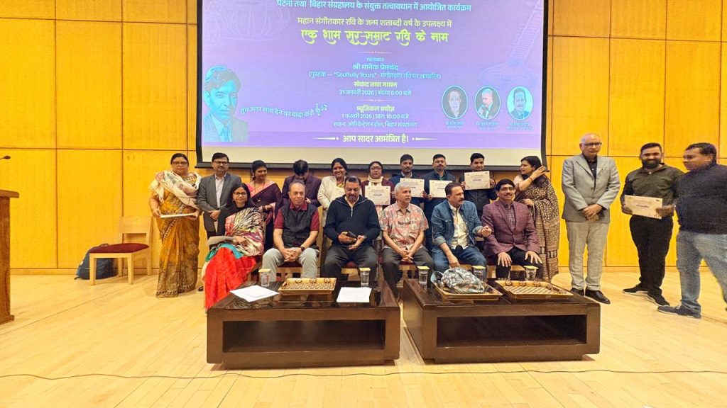 पटना। कला एवं संस्कृति विभाग, बिहार सरकार के तत्वावधान में बिहार राज्य फिल्म विकास एवं वित्त निगम लिमिटेड तथा बिहार संग्रहालय, पटना के संयुक्त सहयोग से महान संगीतकार रवि की जन्मशताब्दी वर्ष के उपलक्ष्य में आयोजित कार्यक्रम “एक शाम सुर-सम्राट रवि के नाम” के दूसरे दिन विशेष म्यूज़िकल क्विज़ प्रतियोगिता का आयोजन किया गया।