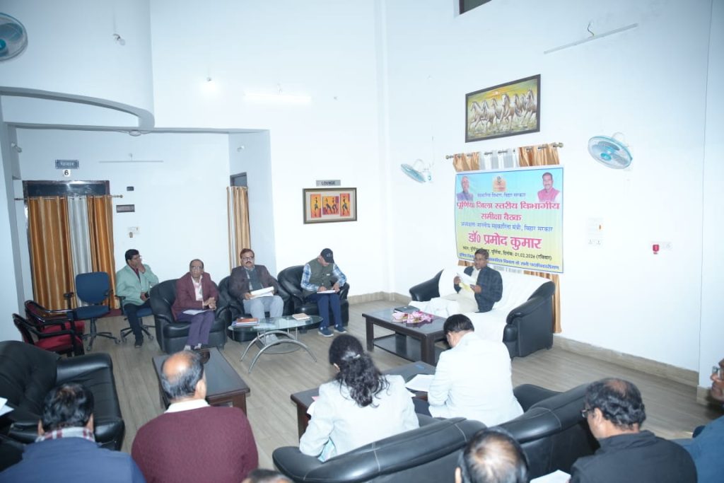 माननीय मंत्री सहकारिता विभाग एवं वन एवं जलवायु परिवर्तन विभाग बिहार सरकार के पूर्णिया आगमन के अवसर पर माननीय मंत्री द्वारा विभागीय अधिकारियों के साथ समीक्षा बैठक का आयोजन परिषद भवन पूर्णिया में रविवार