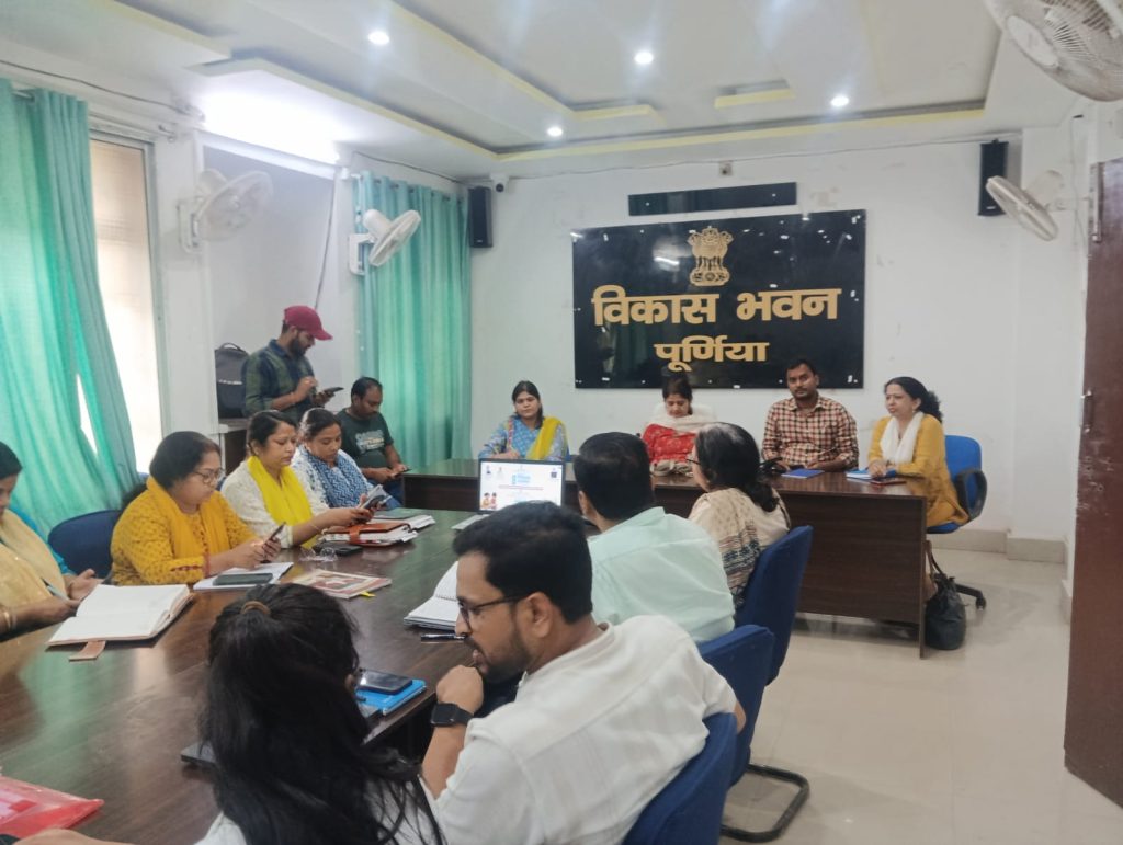 जिला प्रोग्राम पदाधिकारी (ICDS) पूर्णिया की अध्यक्षता में गुरुवार को को जिला स्तर पर पोषण पखवाड़ा 2026 (09 से 23 अप्रैल 2026) के सफल आयोजन हेतु एक महत्वपूर्ण बैठक सह वर्चुअल उद्घाटन समारोह का आयोजन किया गया। इस कार्यक्रम की अध्यक्षता जिला प्रोग्राम पदाधिकारी आईसीडीएस पूर्णिया सुगंधा शर्मा द्वारा की गई।