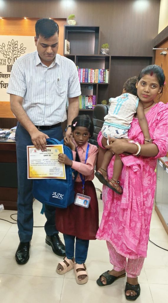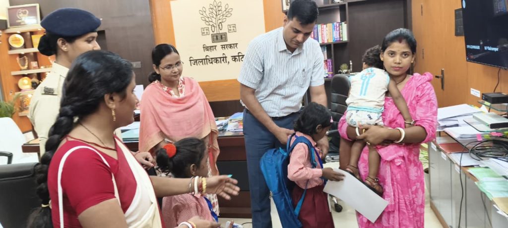 जिले के आंगनबाड़ी केंद्रों में बच्चों के प्रारंभिक बाल्यावस्था देखभाल एवं सम्पूर्ण शिक्षा प्राप्त होने पर कटिहार जिला पदाधिकारी आशुतोष द्विवेदी द्वारा जिलाधिकारी कार्यालय कटिहार में बच्चों को प्रमाणपत्र जारी किया गया। जिलाधिकारी आशुतोष द्विवेदी द्वारा कटिहार सदर के 03 बच्चों एवं कटिहार ग्रामीण क्षेत्र के 02 बच्चों को आंगनबाड़ी केन्द्र पर प्रारंभिक स्कूल पूर्व शिक्षा पूर्ण होने के पश्चात विद्यारंभ प्रमाणपत्र देकर प्रोत्साहित किया गया।