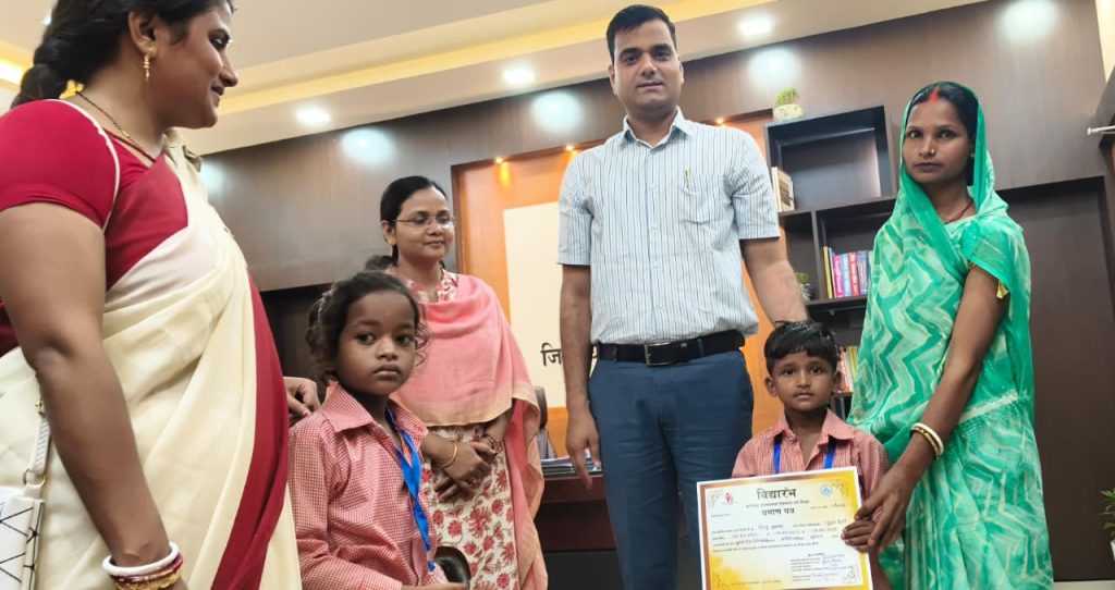 आंगनबाड़ी केंद्र में प्रारंभिक स्कूल पूर्व शिक्षा पूर्ण होने पर जिले के 05 बच्चों को जिला पदाधिकारी द्वारा विद्यारंभ प्रमाणपत्र किया गया वितरण